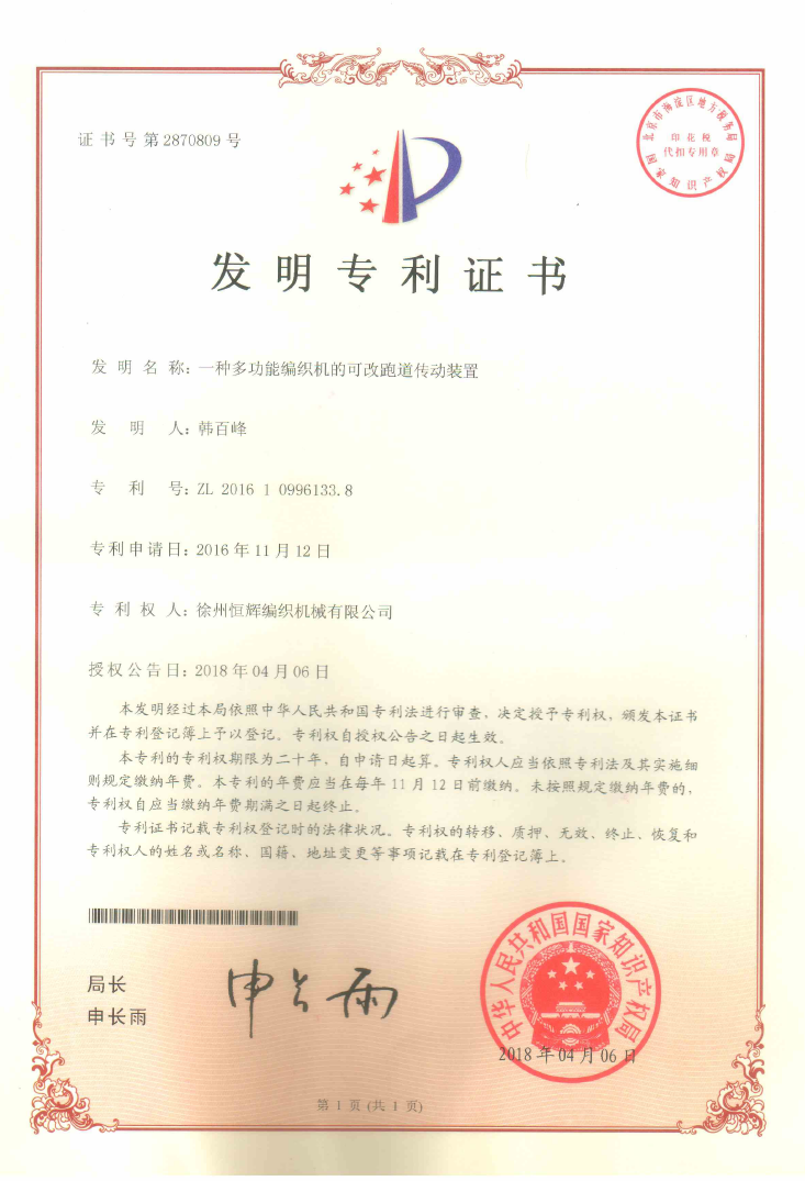 证书号第2870809号